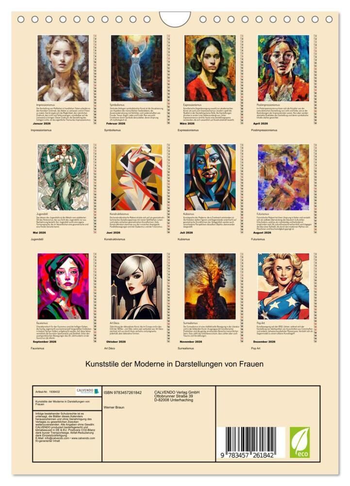 Kunststile der Moderne in Darstellungen von Frauen (Wandkalender 2026 DIN A4 hoch), CALVENDO Monatskalender