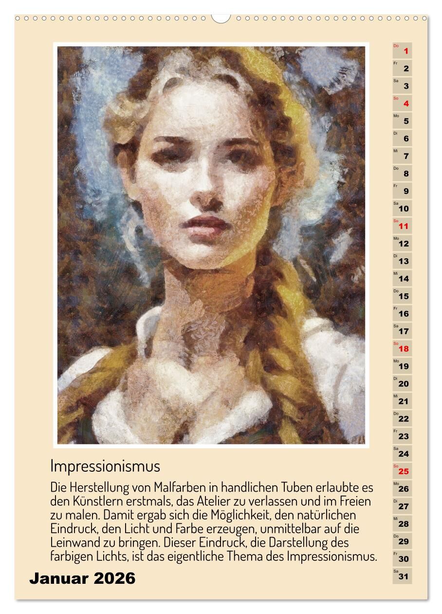 Kunststile der Moderne in Darstellungen von Frauen (Wandkalender 2026 DIN A2 hoch), CALVENDO Monatskalender