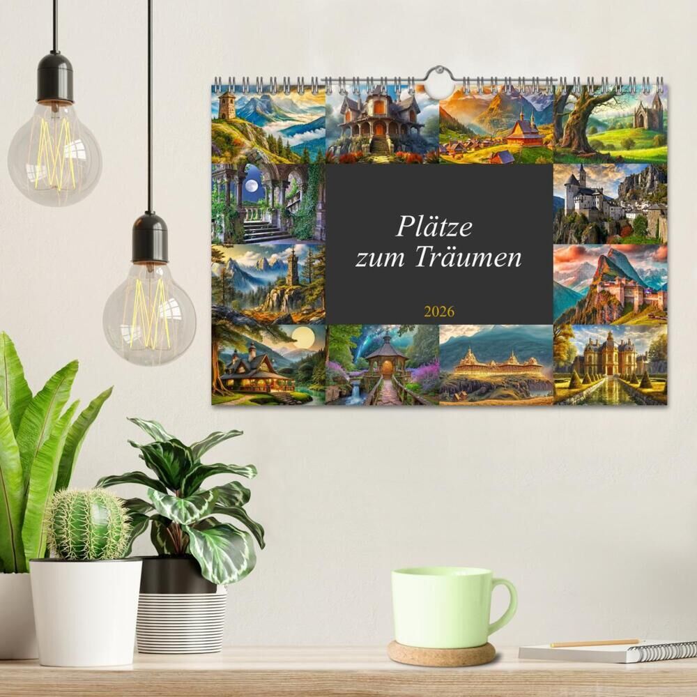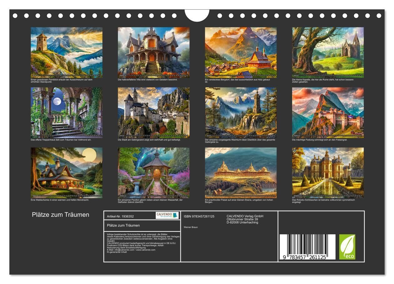 Lassen Sie sich zum Träumen verführen mit dem KI-generierten Kalender "Plätze zum Träumen". Zwölf atemberaubende Bilder entführen Sie zu verwunschenen Orten, die zum Innehalten und Verweilen einladen. Jeder Monat präsentiert ein neues Meisterwerk, das zum Träu...