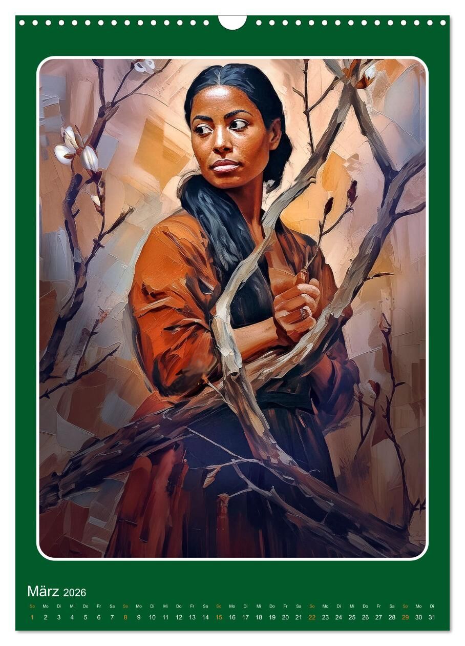 Erleben Sie das Jahr in seiner ganzen natürlichen Schönheit mit unserem Kalender mit Frauen in einer der Jahreszeit entsprechenden Umgebung. Jeder Monat wird von einer faszinierenden Frau in einer Umgebung dargestellt, mit Farben und Details, die die jeweilige...
