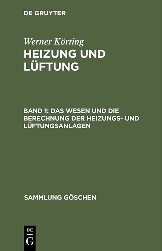 Keine ausführliche Beschreibung für "Das Wesen und die Berechnung der Heizungs- und Lüftungsanlagen" verfügbar. Frontmatter -- Inhaltsverzeichnis -- I. Wärmebedarf und Wärmeerzeugung -- II. Die Luft und ihre Beschaffenheit -- III. Heizung -- IV. Lüft...