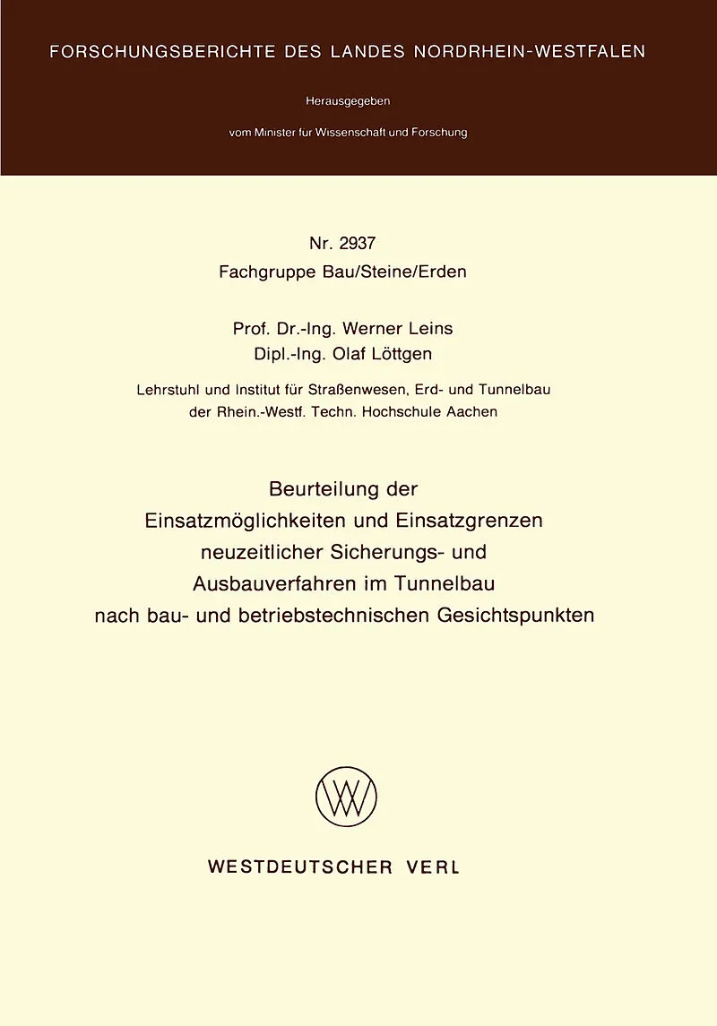 Die Wahl des Vortriebes und die Art der Gebirgssicherung, deren gegenseitige baubetriebliche Abstimmung und Anpassung an die jeweiligen Gebirgsverhältnisse, haben einen erheb lichen Einfluß auf Bauzeit und Kosten unterirdischer Bauwerke. Letztlich bestimmen Ze...