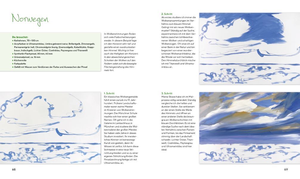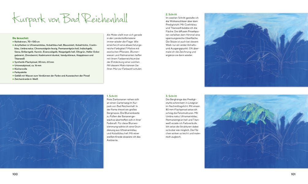 Sie zählen zu den Lieblingsmotiven eines jeden Hobbymalers: Landschaften. Mit Acrylfarben können sie einfach und ausdrucksstark auf die Leinwand gebannt werden. Mit expressivem Pinselduktus und einem gemalten Licht, das auf Oberflächen und Details tanzt, wird ...