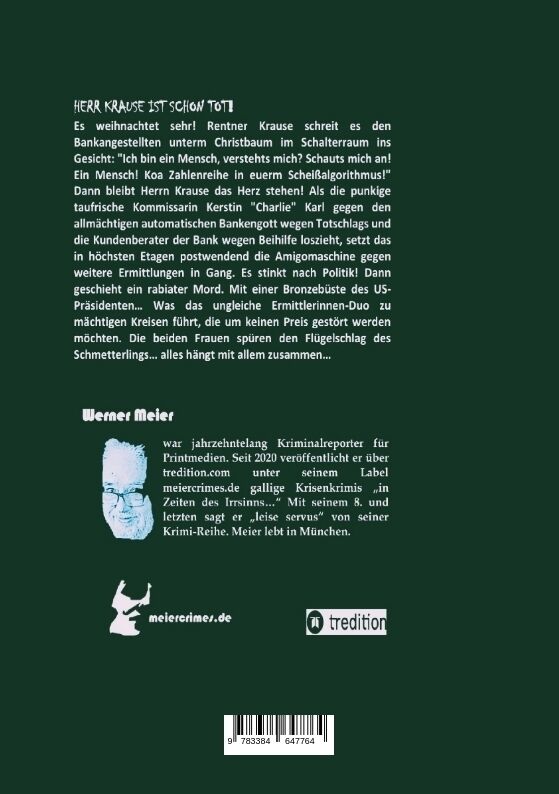Modernes Leben und Sterben im Zeichen der Automatisierung... Es weihnachtet sehr! Rentner Krause schreit es den Bankangestellten unterm Christbaum im Schalterraum ins Gesicht: "Ich bin ein Mensch, verstehts mich? Schauts mich an! Ein Mensch! Koa Zahlenreihe in...