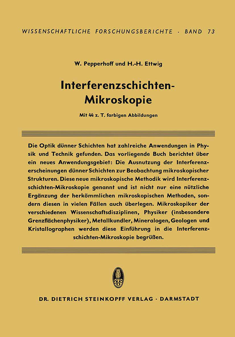 Die Optik dunner Schichten hat zahlreiche Anwendungen in Physik und Technik gefunden. In der vorliegenden Schrift wird uber ein neueres Anwendungsgebiet berichtet: die Ausnutzung der Interferenzerscheinung dunner Schichten zur Be obachtung mikroskopischer Stru...
