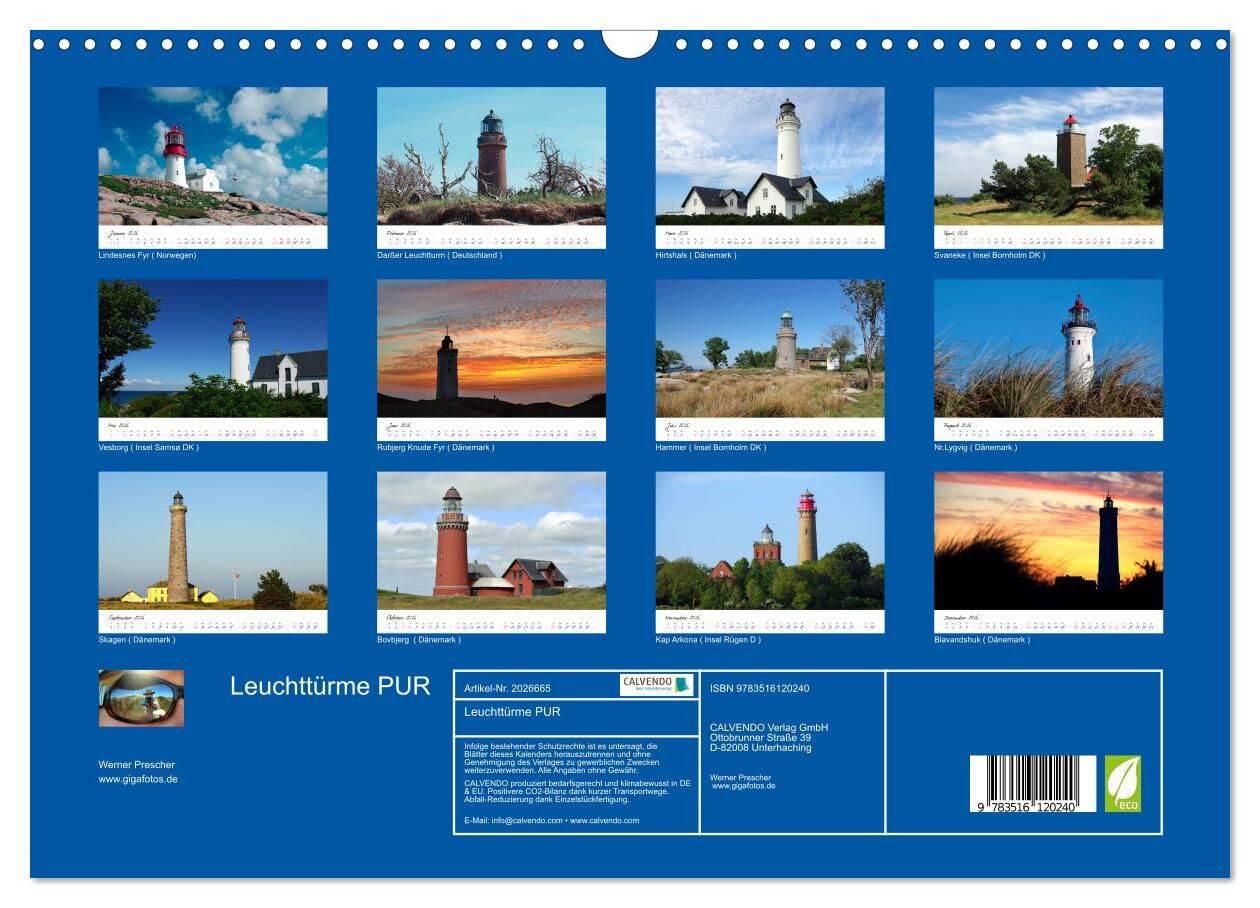 Leuchttürme PUR (Wandkalender 2026 DIN A3 quer), CALVENDO Monatskalender
