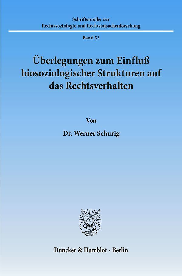 Überlegungen zum Einfluß biosoziologischer Strukturen auf das Rechtsverhalten.