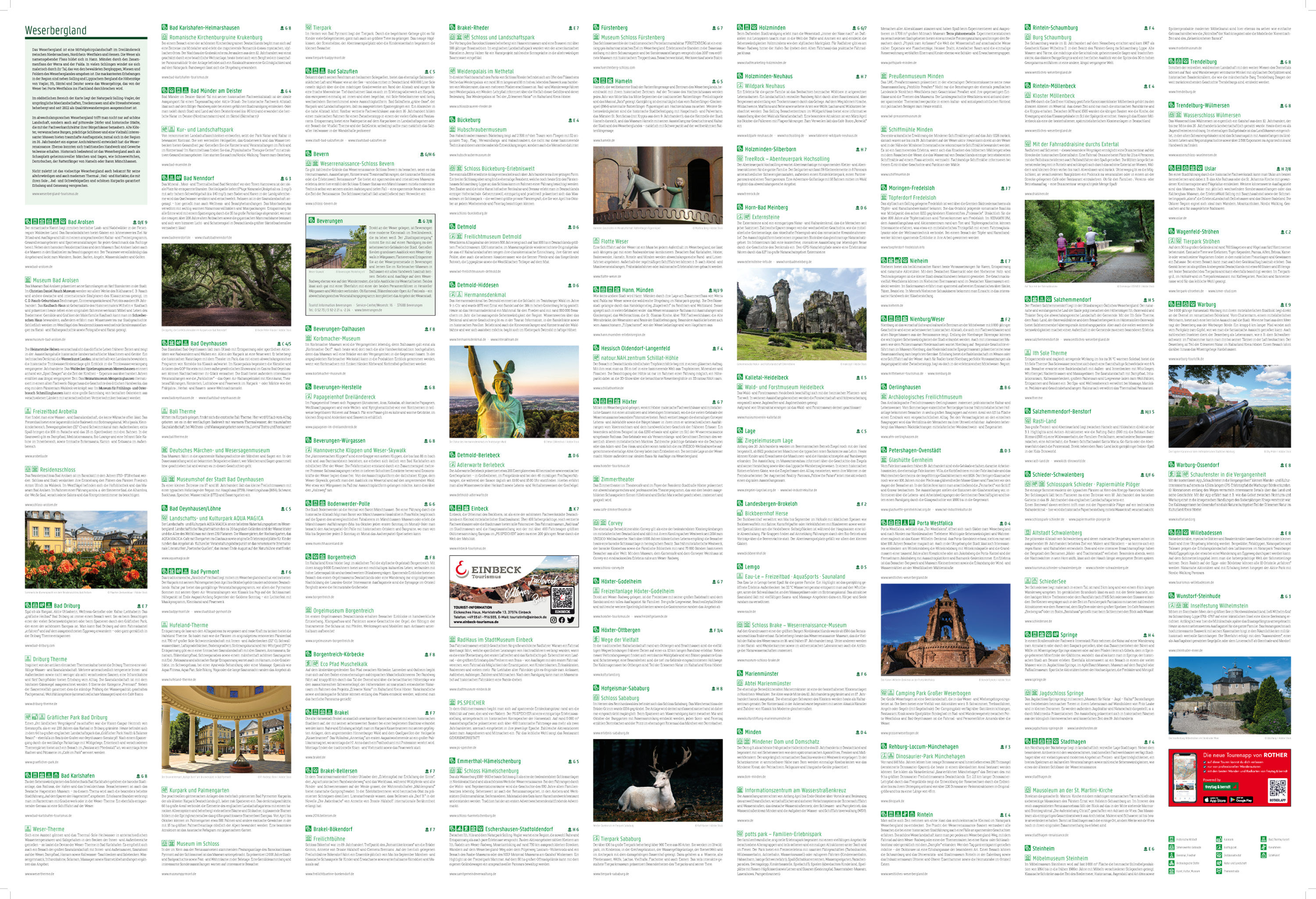 Mit der Freizeitkarte Weserbergland können Sie Ihre Ausflüge und Touren ideal planen und sich über alle Sehenswürdigkeiten in der Region informieren. Der Erlebnisführer auf der Rückseite beschreibt alle wichtigen Ausflugsziele. Informationen zur Ausflugskarte ...