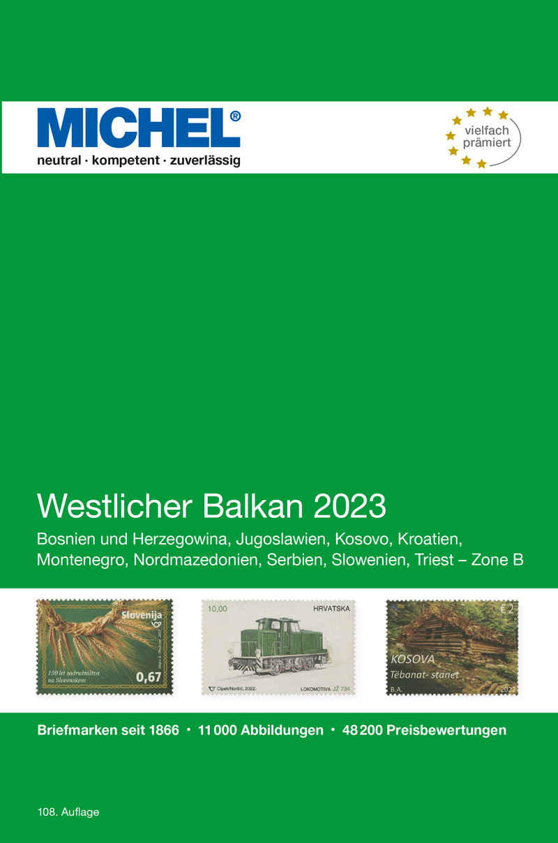Der sechste Band der MICHEL Europa-Reihe enthält die Briefmarken der beliebten Sammelgebiete Bosnien und Herzegowina, Jugoslawien, Kosovo, Kroatien, Montenegro, Nordmazedonien, Serbien, Slowenien und Triest Zone B.