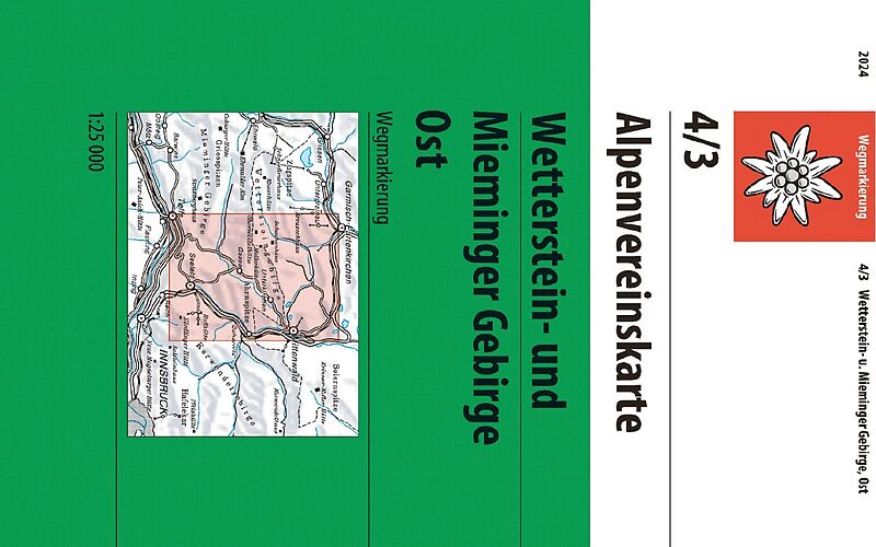 Topographische Karte 1:25.000, mehrfarbig, mit Wegmarkierungen, Bushaltestellen, Schummerung, Felszeichnung, Gletscherdarstellung, Kennzeichnung der Klettersteige, UTM-Gitter. Gebiet: Wettersteingebirge von der Oberreintalhütte bis zur Wetterstein-Spitze und M...
