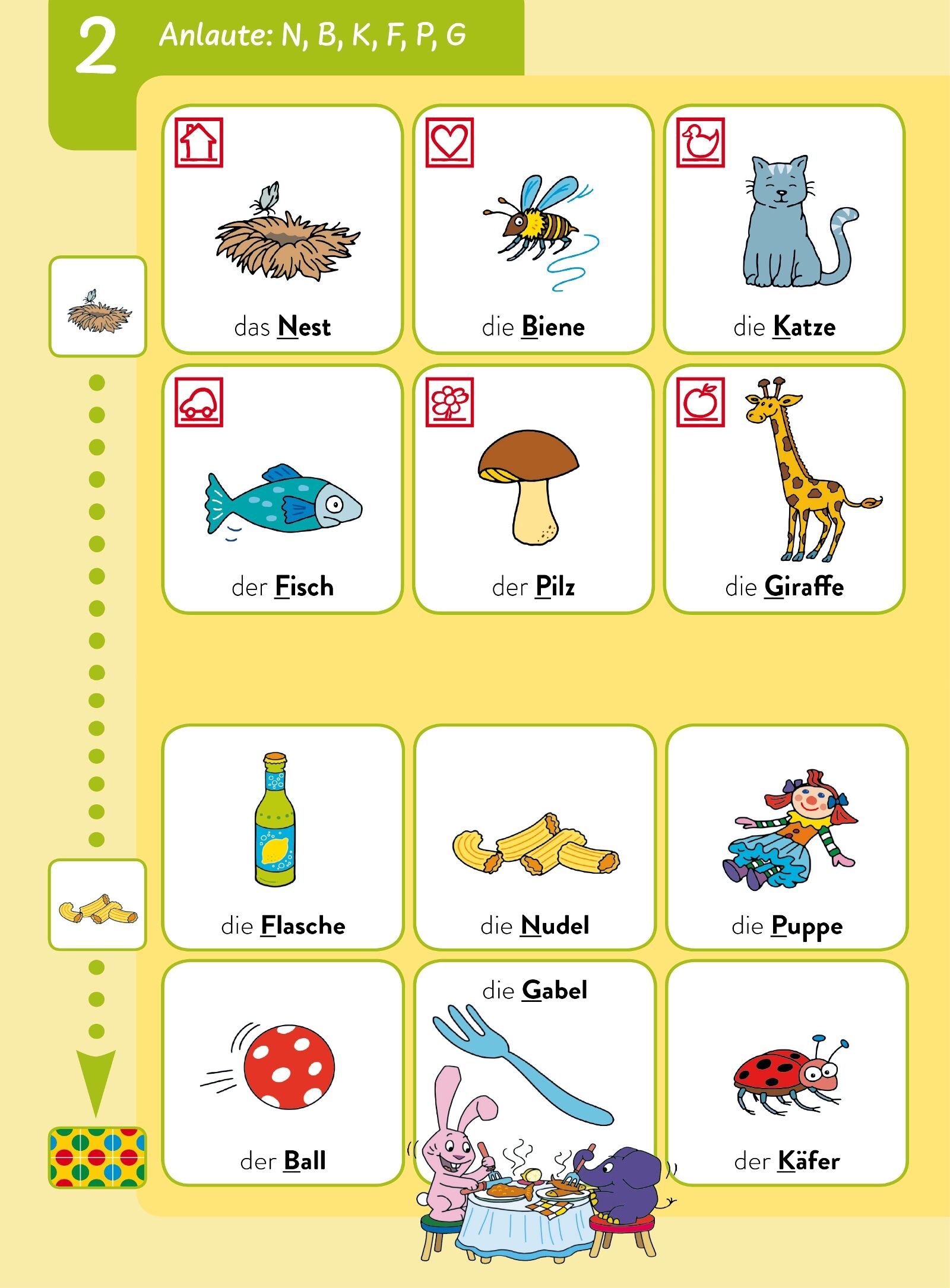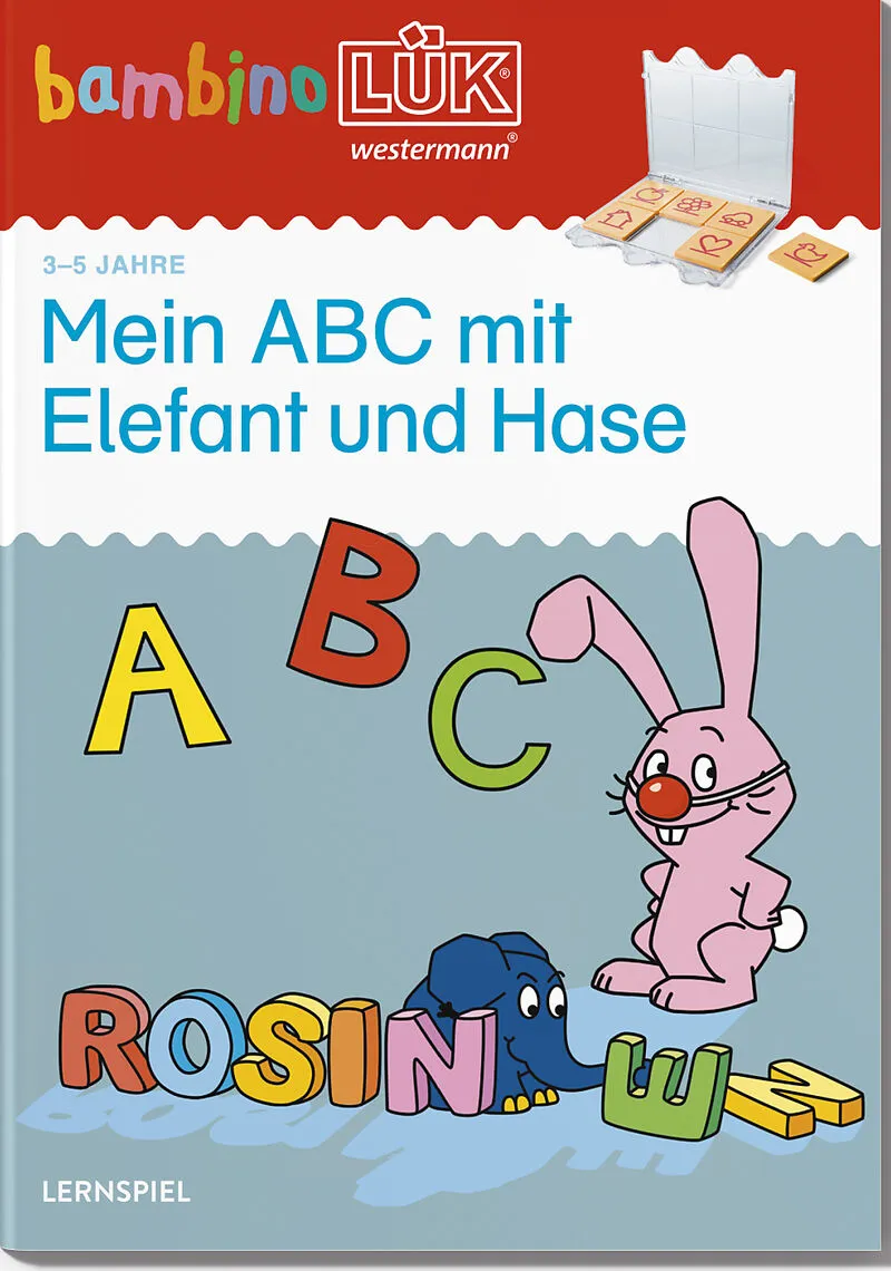 An- und Auslaute vergleichen, Reimwörter finden: Im bambinoLÜK-Heft Mein ABC mit Elefant und Hase führen die beiden beliebten WDR-Helden Kinder Schritt für Schritt in die Welt der Buchstaben ein. INHALT Anlaute: A, E, I, EI, O, U Anlaute: N, B, K, F, P, G Anl...