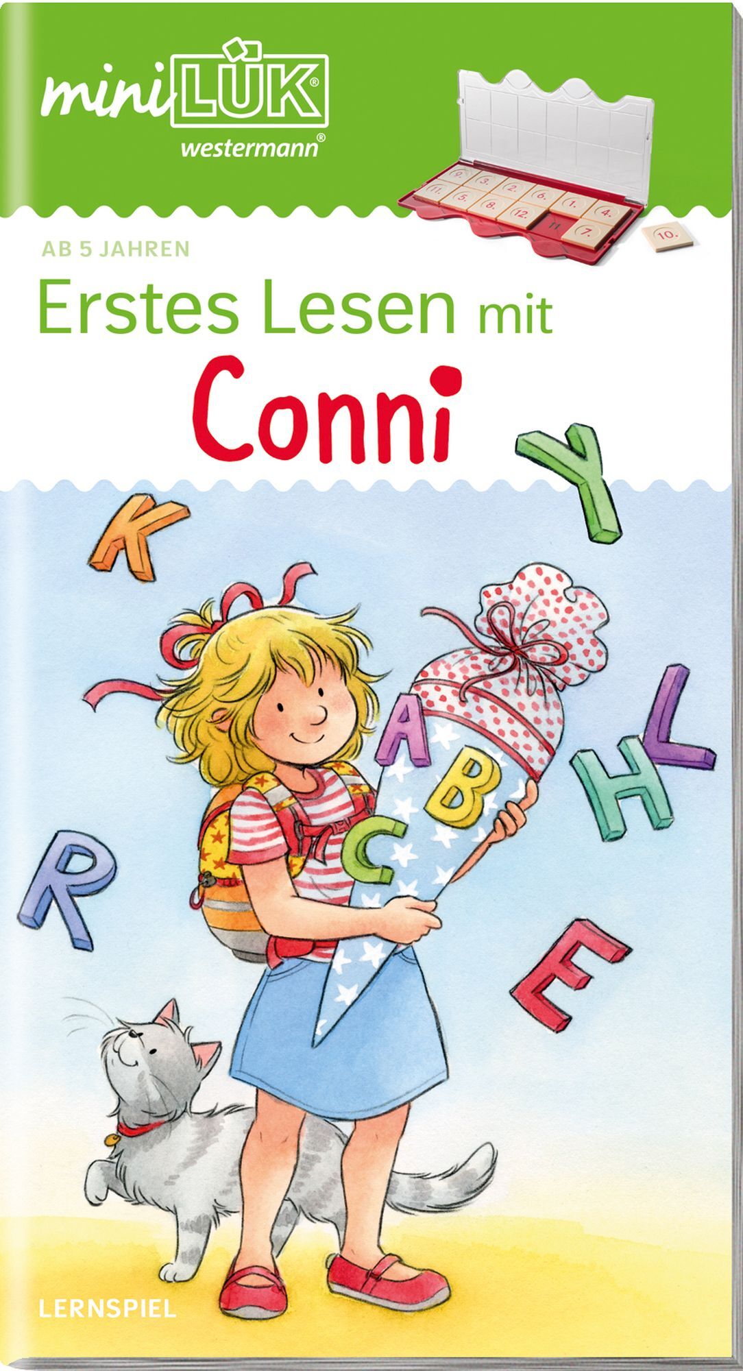 miniLÜK 1. Lesen mit Conni Conni kommt in die Schule. Die Übungen miniLÜK-Heft " Erstes Lesen mit Conni " begleiten die Heldin unzähliger Hefte, Bücher, Spiele an ihrem 1. Schultag. Lerne Connis Familie und Freunde kennen, erlebe Conni in ihrer neuen Klasse, s...