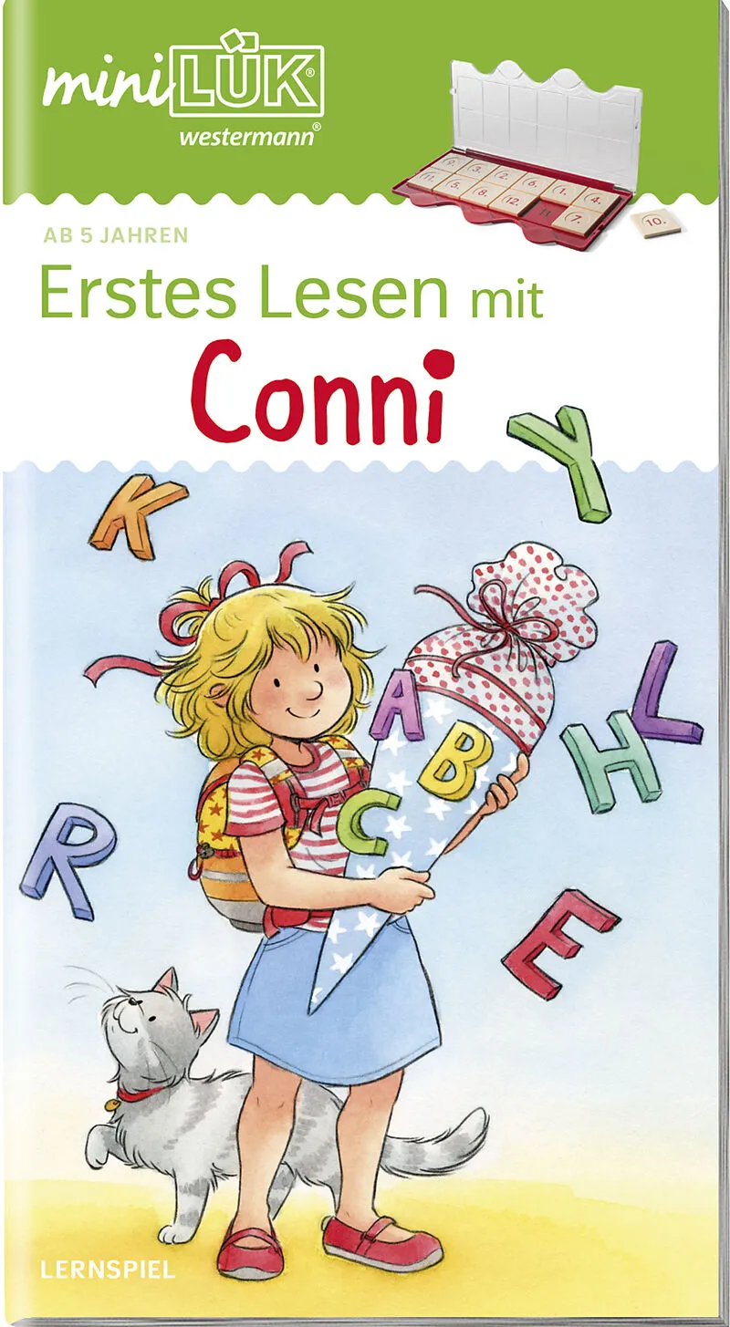 miniLÜK 1. Lesen mit Conni Conni kommt in die Schule. Die Übungen miniLÜK-Heft " Erstes Lesen mit Conni " begleiten die Heldin unzähliger Hefte, Bücher, Spiele an ihrem 1. Schultag. Lerne Connis Familie und Freunde kennen, erlebe Conni in ihrer neuen Klasse, s...