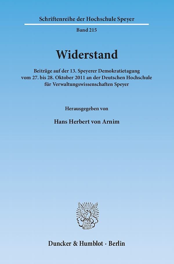 Neueste Entwicklungen haben das uralte Thema »Widerstand« gegen illegitime Macht wieder aktuell werden lassen. Beispiele sind die Aufstände gegen Diktatoren in Nordafrika und im Nahen Osten. Die 13. Speyerer Demokratietagung behandelte nicht nur den »Königsmor...