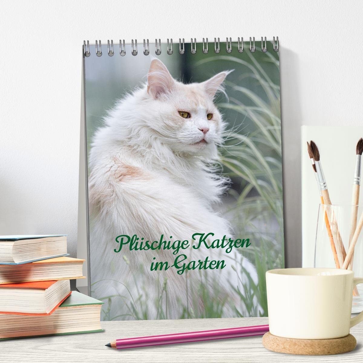 Plüschige Katzen im Garten (Tischkalender 2026 DIN A5 hoch), CALVENDO Monatskalender