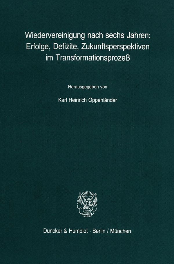Nach sechs Jahren Wiedervereinigung ist die Zeit reif, Analysen über Erfolge und Defizite im bisher abgelaufenen Transformationsprozeß der neuen Bundesländer vorzulegen und - noch intensiver als zuvor - über Zukunftsperspektiven nachzudenken. Der vorliegende S...