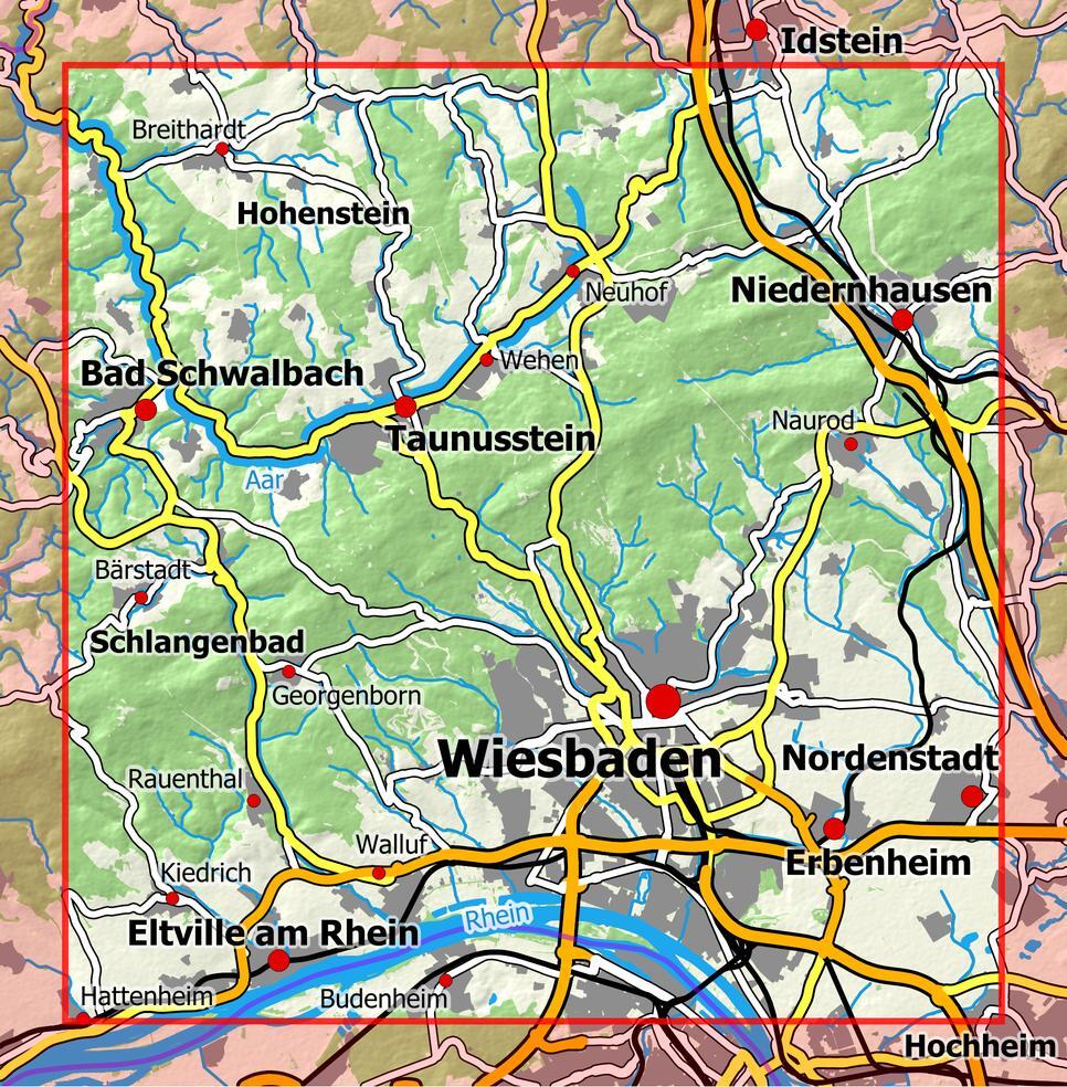 Offizielle Karte des Rhein-Taunus-Klub e.V. Sehr genaue und aktuelle topografische Kartographie im Ideal-Maßstab 1 : 25 000 Die Wege des Rhein-Taunus-Klub mit ihren Symbolen Viele weitere Wander- und Radwege sowie Langlaufloipen 3D-Darstellung der Landschaft ...