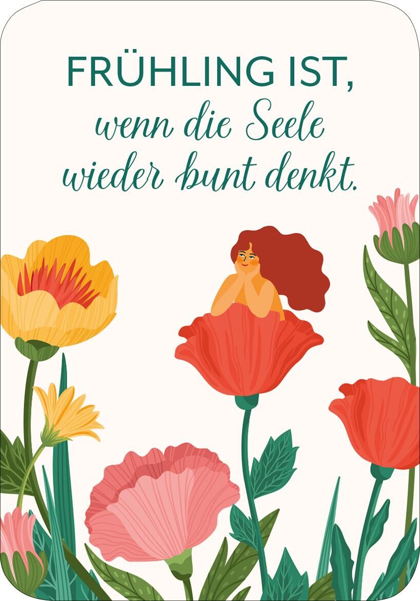 Das Glück im Grünen: 50 Weisheiten aus der Natur Endlich Frühling! Dieses inspirierende Kartenset lädt dich ein, die Schönheit der Natur zu genießen und den Frühling in all seinen Farben zu feiern. Jede der 50 Karten enthält Sprüche, Zitate und Weisheiten vol...