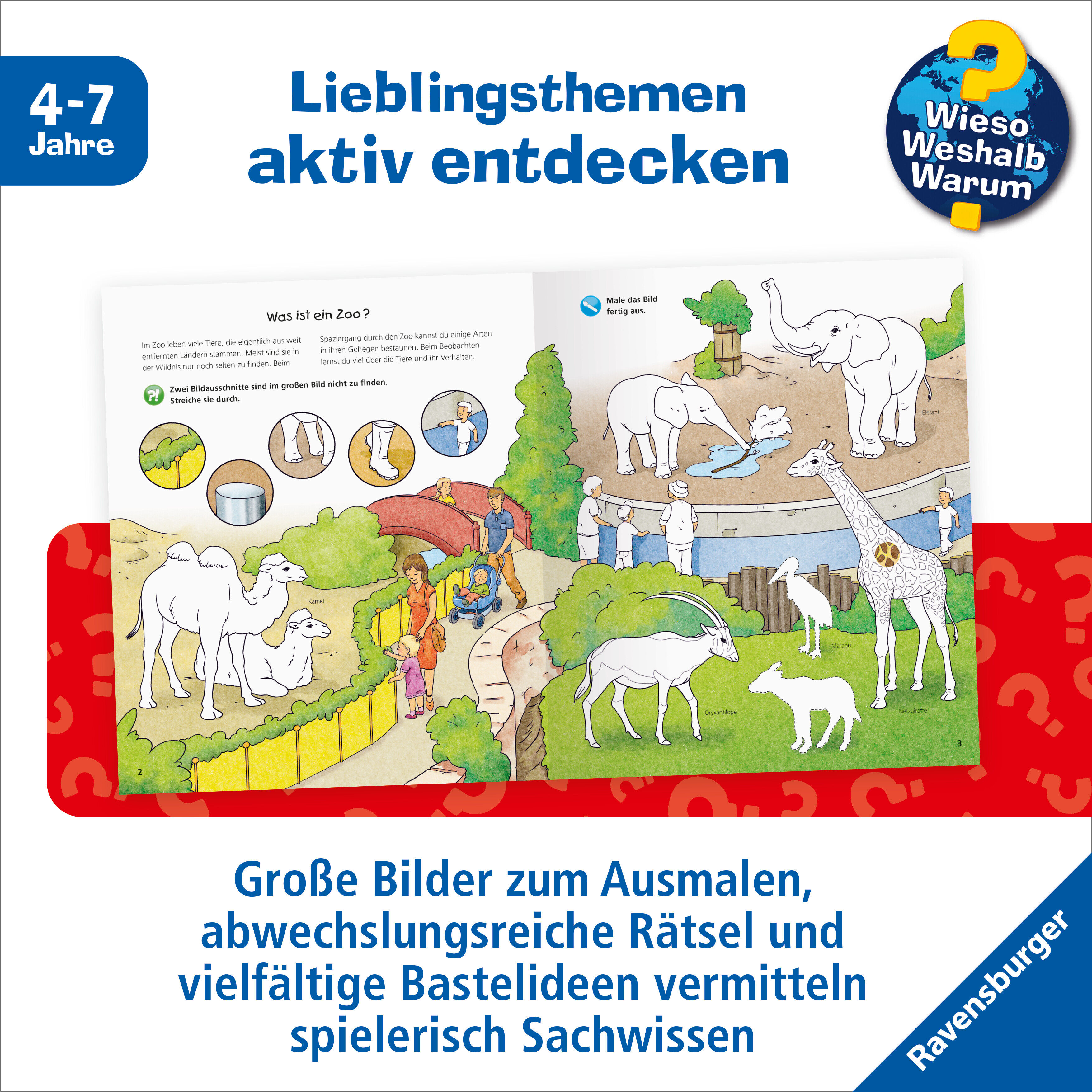 Löwen, Elefanten und Affen bei einem Ausflug in den Zoo kannst du deine Lieblingstiere hautnah erleben! Aber wie kommen die Tiere eigentlich in den Zoo? Wer kümmert sich dort um sie? Und welche Tiere darfst du im Streichelzoo füttern? Mit Buntstiften und Stick...