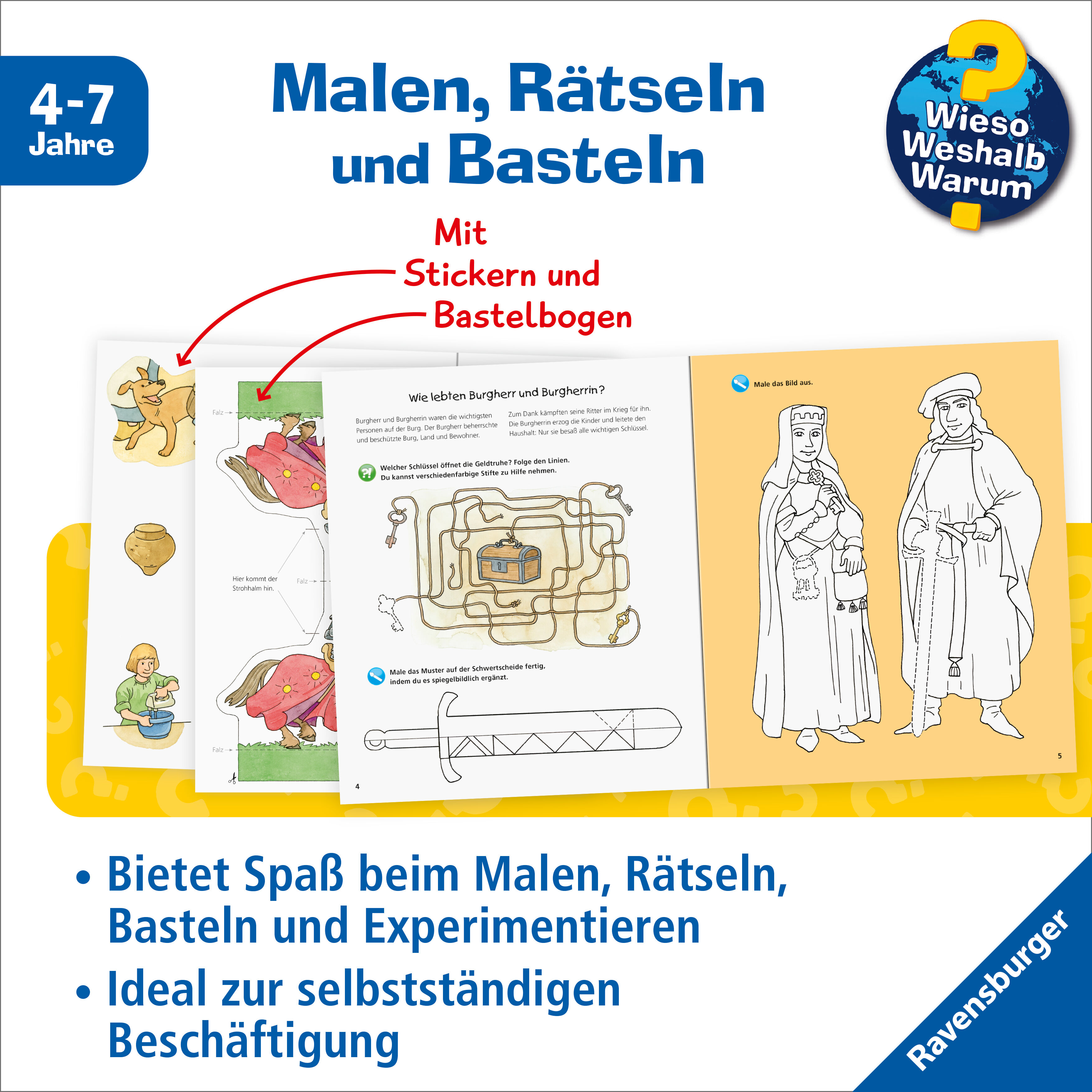 Wie wurde man Ritter? Was geschah bei einem Turnier? Große Ausmalbilder, knifflige Rätsel, einfallsreiche Bastelideen und Experimente laden Kinder zum aktiven Entdecken ein. Mit kurzen Wissenstexten, über 20 Stickern und einem Bastelbogen. Wieso? Weshalb? Waru...