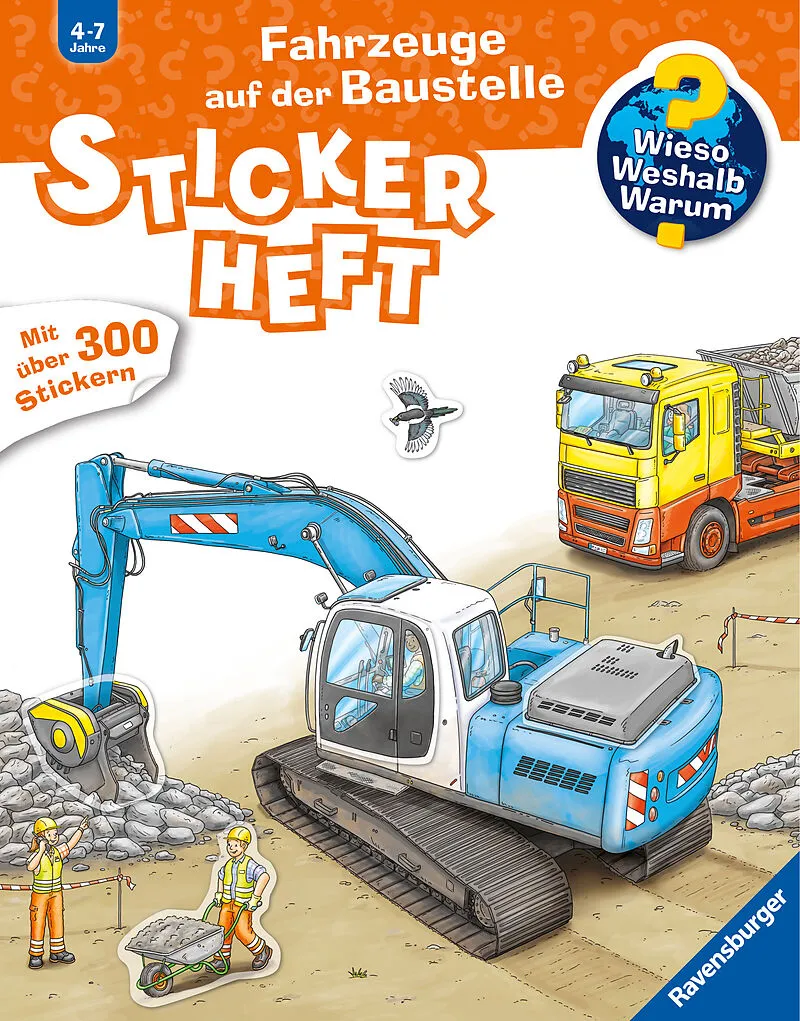 Wissen, das kleben bleibt alles über Bagger, Kran und Betonmischer! Was können Bagger alles? Welche Fahrzeuge helfen beim Straßenbau? Was passiert in einem Betonmischer? Mit über 300 Stickern entdecken Kinder die spannende Welt der Baustellenfahrzeuge. Sie bew...