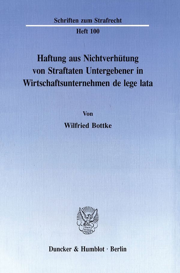 Haftung aus Nichtverhütung von Straftaten Untergebener in Wirtschaftsunternehmen de lege lata.
