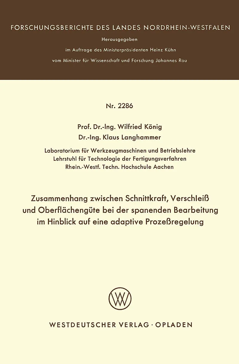 Zusammenhang zwischen Schnittkraft, Verschleiß und Oberflächengüte bei der spanenden Bearbeitung im Hinblick auf eine adaptive Prozeßregelung