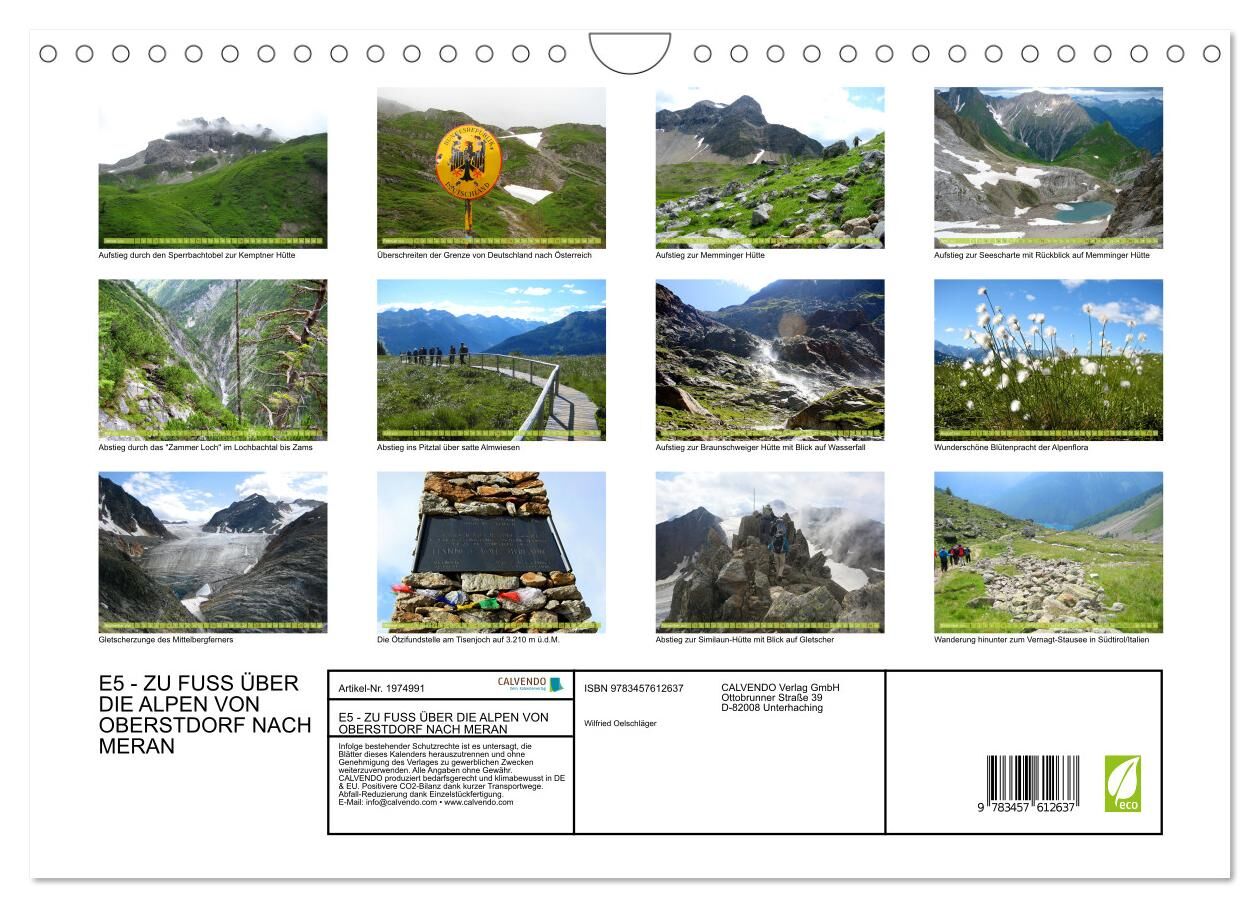 E5 - ZU FUSS ÜBER DIE ALPEN VON OBERSTDORF NACH MERAN (Wandkalender 2026 DIN A4 quer), CALVENDO Monatskalender