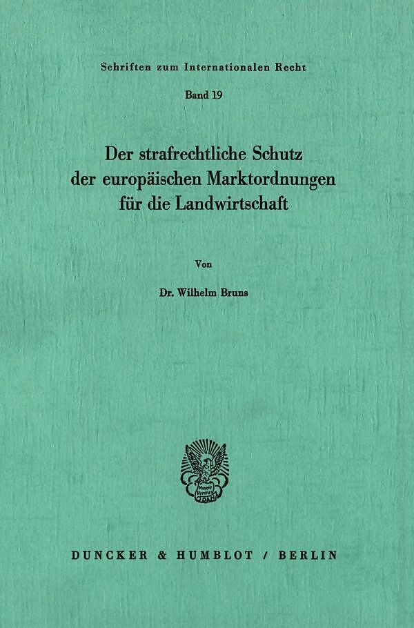 Der strafrechtliche Schutz der europäischen Marktordnungen für die Landwirtschaft.
