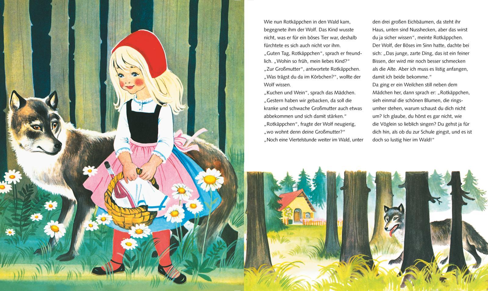 Wunderschön-nostalgischer Sammelband mit 14 bekannten Märchen der Brüder Grimm für Kinder ab 4 Jahren. Die farbenfrohen Illustrationen der Bilderbuchkünstlerinnen Felicitas Kuhn, Gerti Mauser-Lichtl und Anny Hoffmann aus den 1970er Jahren lassen Kinderaugen a...