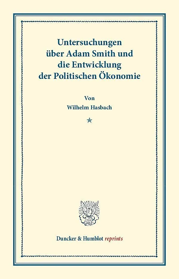 Untersuchungen über Adam Smith und die Entwicklung der Politischen Ökonomie.