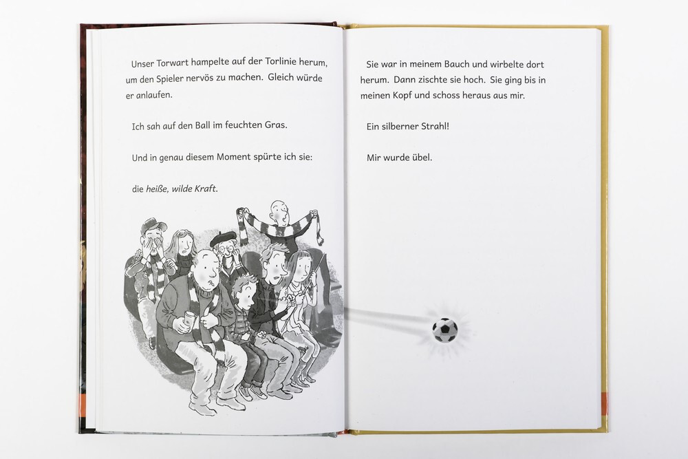Es passiert, als Toni zum ersten Mal im Fußball-Stadion dabei ist. Das Spiel ist langweilig. Die Mannschaft fabriziert nur Fehlpässe. Da spürt Toni sie plötzlich: die HEIßE WILDE KRAFT. Sie wirbelt in seinem Bauch, dann schießt sie aufs Spielfeld und legt sich...