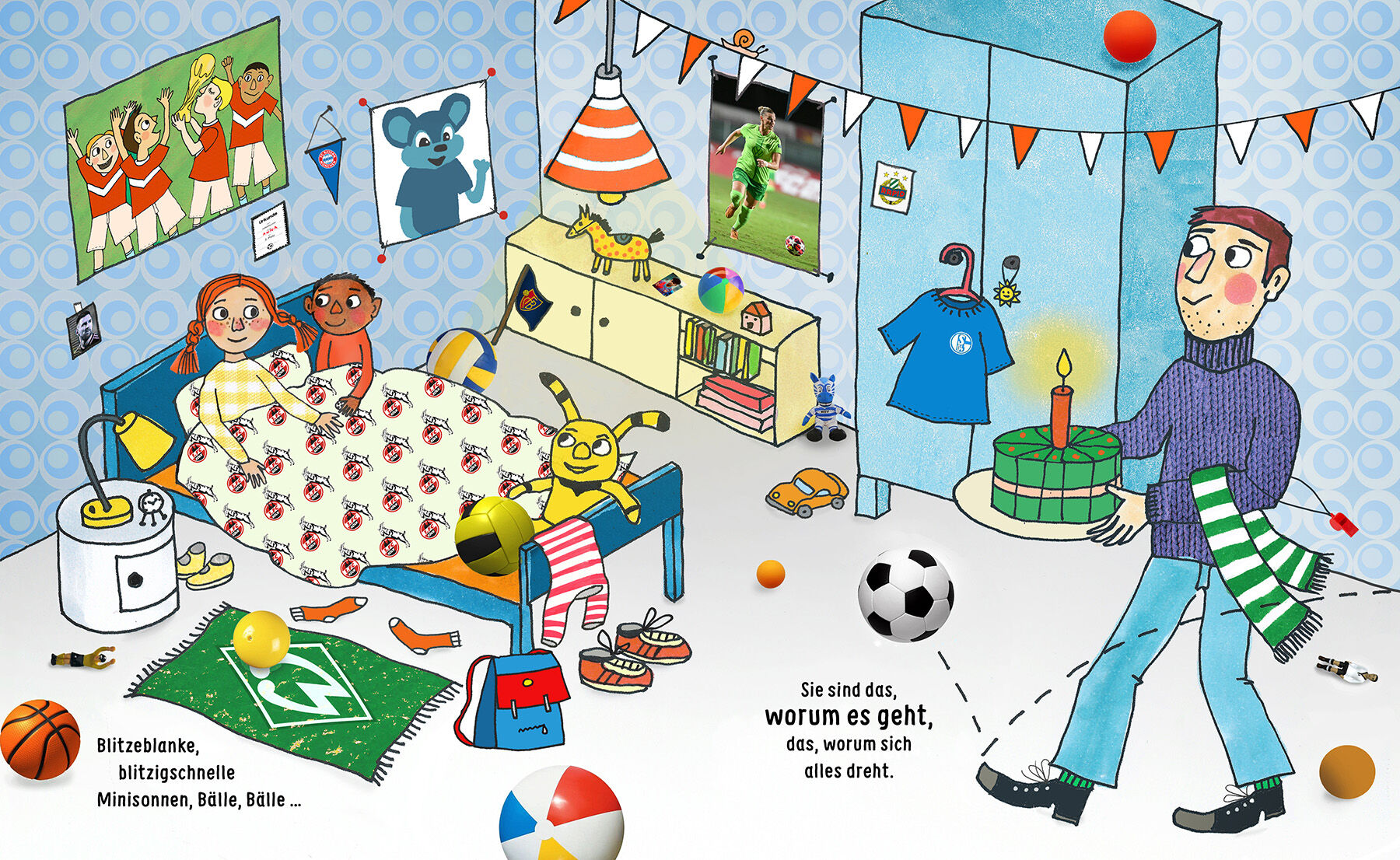 Ich am Rhein und du in Riga. Ein fußballverrücktes Bilderbuch vom Dreamteam Will Gmehling und Antje Damm. Kiki, Coco, Klaas und Kalle, jede Quappe, jede Qualle - alle lieben Fußball, alle! Temporeich und frech wie ein Rapsong feiert dieses Bilderbuch den Fußba...