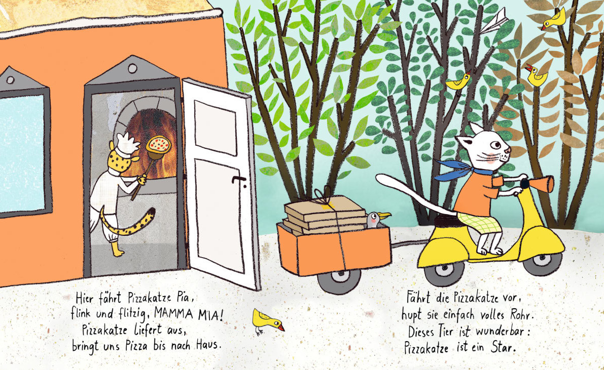 Hier fährt Pizzakatze Pia, flink und flitzig, MAMMA MIA! Auf ihrer gelben Vespa saust sie durch das Bilderbuch, beladen mit Pizza, die so köstlich ist, dass du es nicht mehr vergisst. Will Gmehling gibt der Katze Anschwung, in temporeichen Versen lässt er sie ...