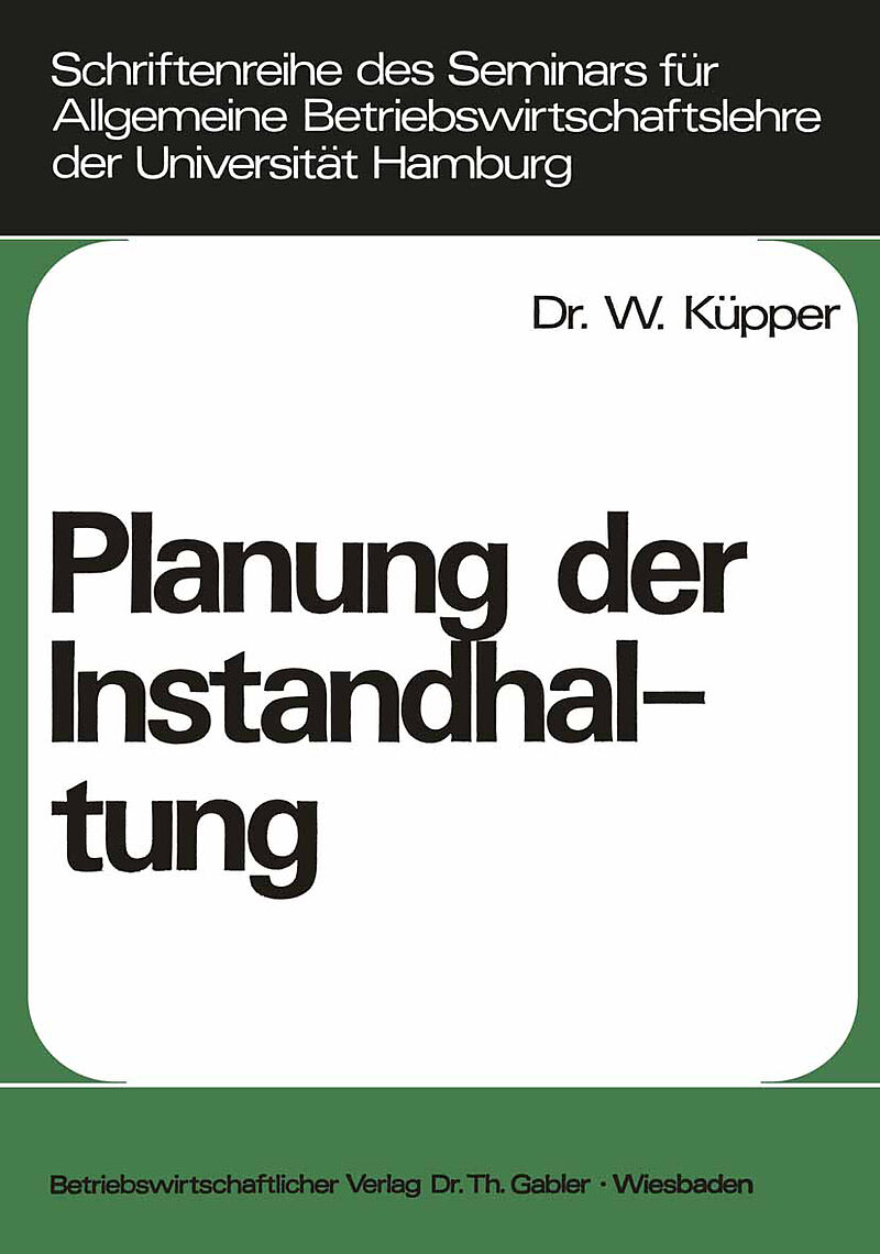 Alsichvor einigen Jahren auf Anregung von Professor Dr. Gerhard Kruger begann, mich mit betriebswirtschaftlichen Problemen der In standhaltungsplanung zu beschaftigen, lagen kaum deutschsprachige Untersuchungen hierzu yore In der Zwischenzeit sind neben primar...