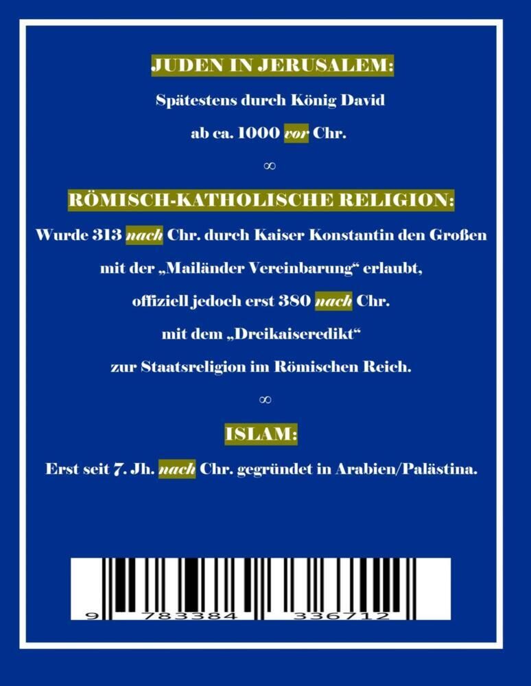 Anlässlich des grausamen Überfalls durch die palästinensische Organisation HAMAS auf den Staat Israel am 7. Oktober 2023: Die muslimische Religion des Islam, der KORAN, befiehlt die Vernichtung Andersgläubiger: Juden und Christen! In den muslimischen Völkern/L...
