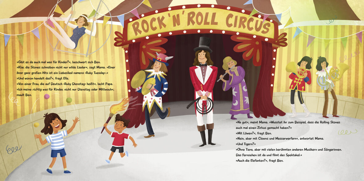 Ella ist so richtig sauer! Darum erzählt Mama ihr die Geschichte von den Rolling Stones und ihren Liedern über Wut, Sehnsucht und das wilde Leben. Ella taucht ein in die Musik, bis am Ende selbst der letzte Ärger verflogen ist. Rockmusik für Kinder Ellas wund...
