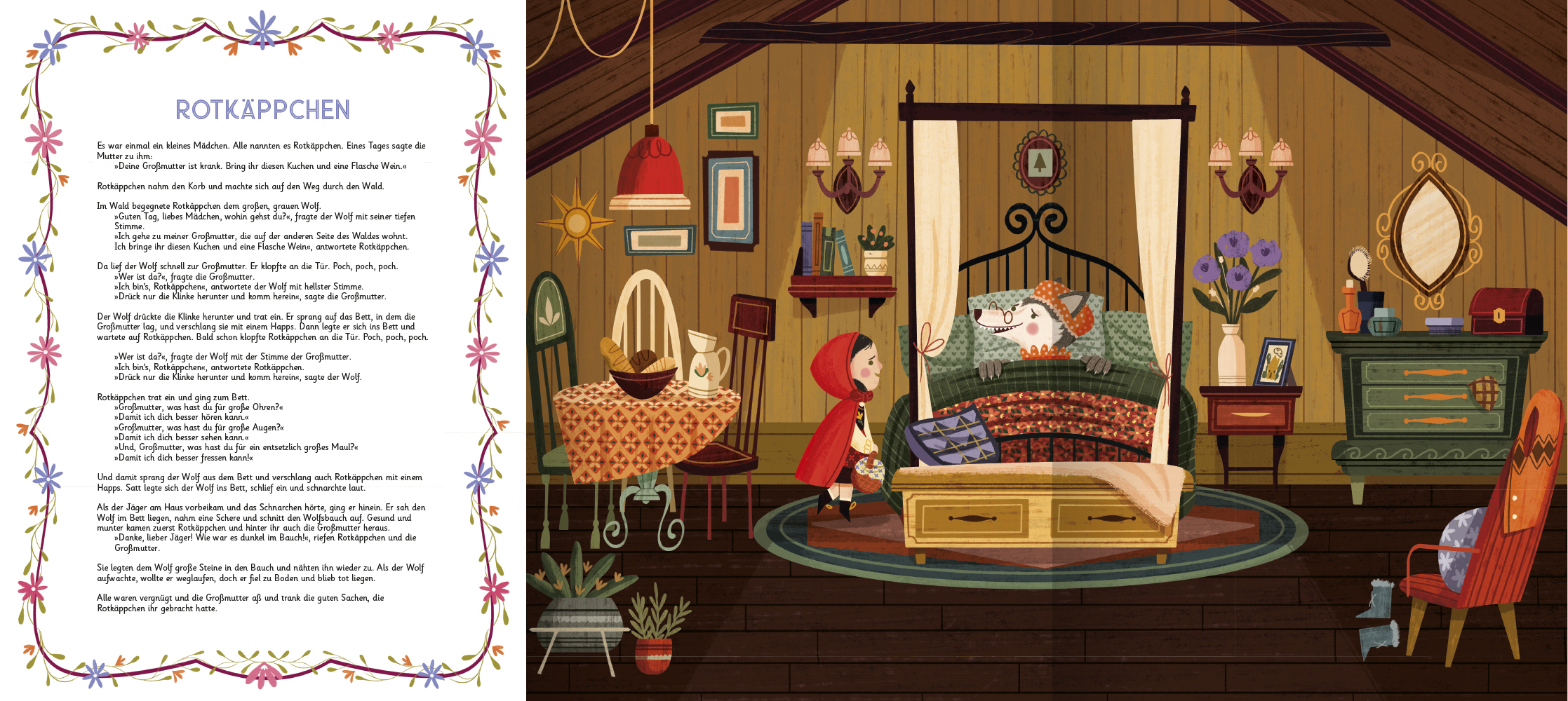Fünf bekannte Märchen zum Vorlesen: -Rotkäppchen -Die drei kleinen Schweinchen -Schneewittchen -Goldlöckchen und die drei Bären -Hänsel und Gretel Märchenhafte Szenerien zum Ausklappen als 3D Panorama Edle Goldprägung auf dem Cover