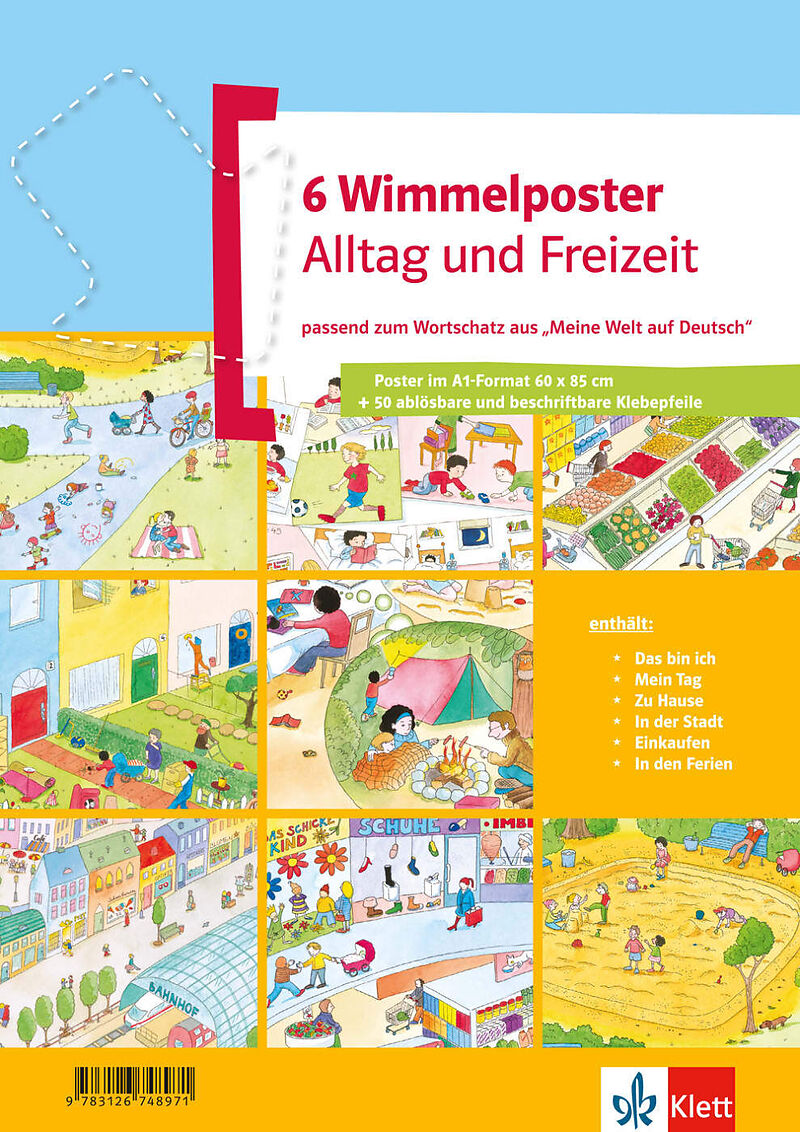 Die Wimmelposter zu 'Meine Welt auf Deutsch' bieten vielfältige Erzählanlässe für den Unterricht. Jedes Posterset beinhaltet zusätzlich wiederablösbare und beschriftbare Klebepfeile zum Markieren einzelner Szenen auf den Wimmelpostern. Die Wimmelpost...