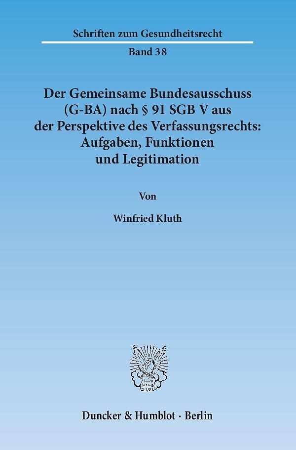 Die demokratische Legitimation des Gemeinsamen Bundesausschusses ist seit Jahren in vielen Einzelaspekten umstritten. Die Untersuchung zeigt auf der Grundlage der facettenreichen neueren Rechtsprechung des Bundesverfassungsgerichts zur funktionalen Selbstverwa...