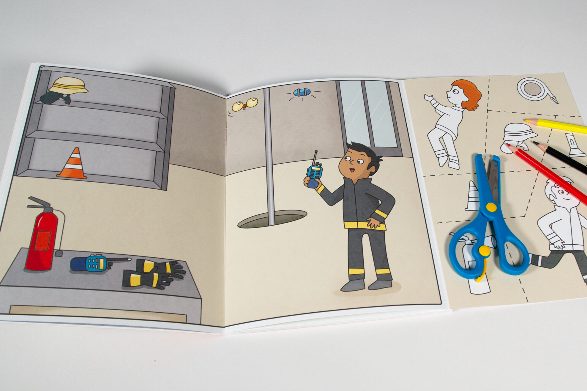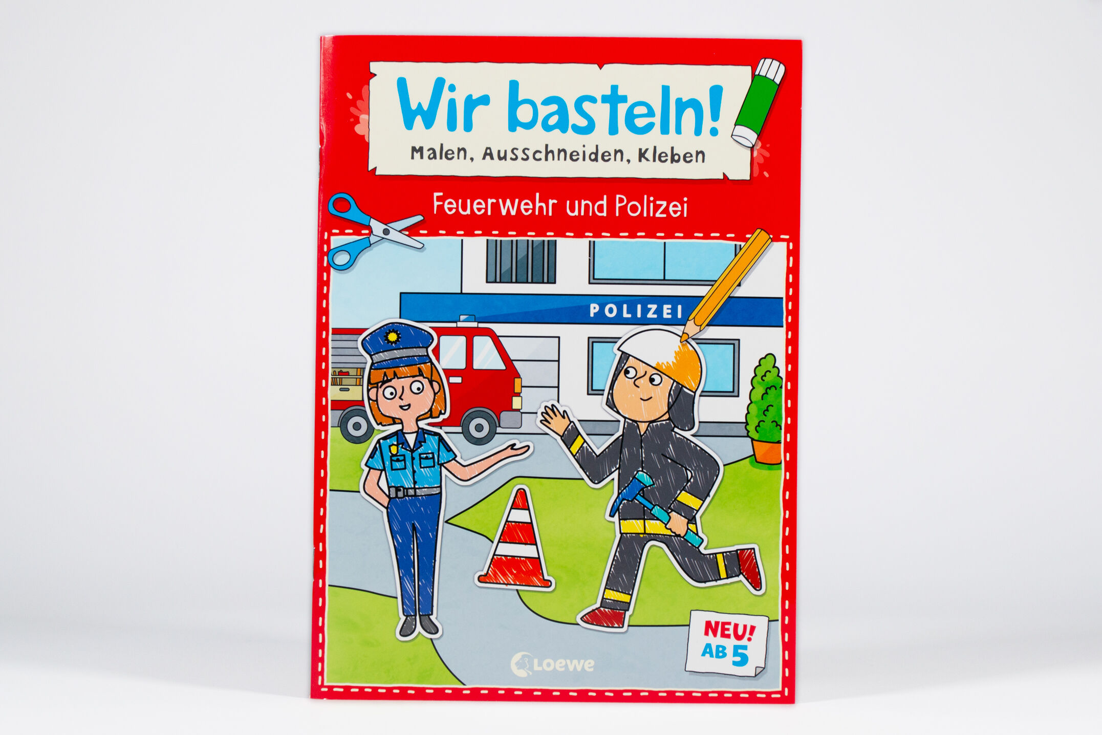 Wir basteln! ab 5 Jahren - Malen, Ausschneiden, Kleben - Feuerwehr und Polizei Bastelspaß mit Feuerwehr und Polizei 1. Male alle Bilder bunt aus 2. Schneide die Figuren entlang der Linien aus. 3. Klebe sie auf das Hintergrundbild. Gestalte bunte Welten! 8 Szen...