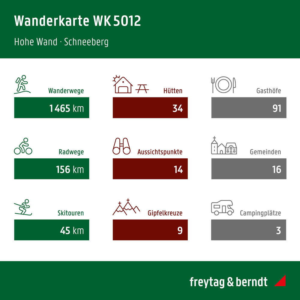 Die Wander-, Rad- und Freizeitkarte Hohe Wand ist die ideale Karte für Wanderungen, Radtouren und Ausflüge in der Region. Mit der Wander- und Radkarte können Sie Ihre Touren ideal planen und sich über Sehenswürdigkeiten und Aussichtspunkte entlang der Route in...