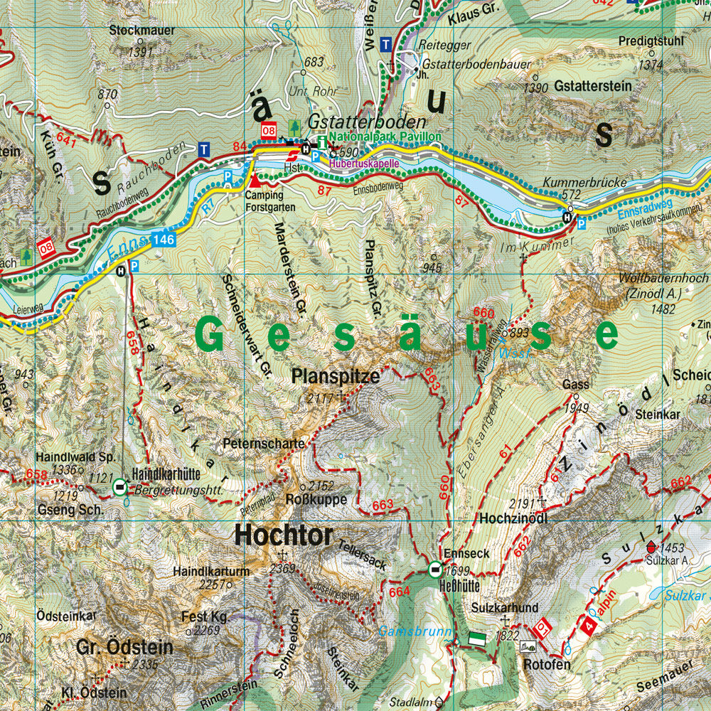 Die Wander-, Rad- und Freizeitkarte Nationalpark Gesäuse ist die ideale Karte für Wanderungen, Radtouren und Ausflüge in der Region. Mit der Wander- und Radkarte können Sie Ihre Touren ideal planen und sich über Sehenswürdigkeiten und Aussichtspunkte entlang d...