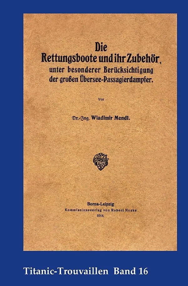 Nachdruck der Dissertation von Wladimir Mendl, Ingenieur für Schiffsmaschinenbau, über die Rettungsbbote auf Passagierschiffen nach dem Untergang der Titanic. Der rumänische Student Wladimir Mendl studierte ab 1909 Königlichen Technischen Hochschule in Berlin ...