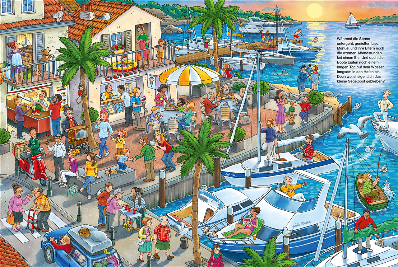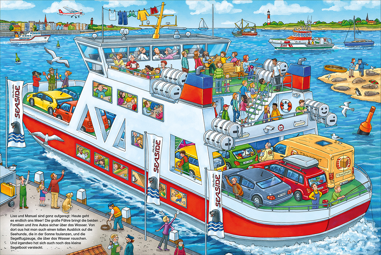 Leinen los! Am Fischereihafen tummeln sich Seemänner, Angler und Fischverkäufer, die allerlei Leckereien im Angebot haben. Und auch am Frachthafen ist immer was los: Kräne verladen schwere Lasten auf riesige Container. Da passt die Wasserpolizei ganz genau auf...