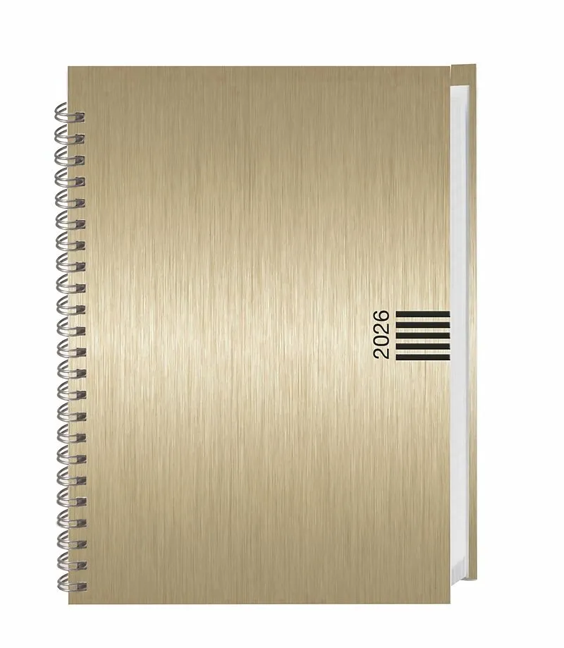 Der treue Begleiter für 365 Tage voller Möglichkeiten: Dieser elegante Taschenplaner 2026 mit stabilem Aluoptik-Hardcover in Gold passt perfekt in jede Handtasche - Organizer mit Stil: Der Buchkalender im Format A5 mit goldenem Einband vereint Terminübersich...