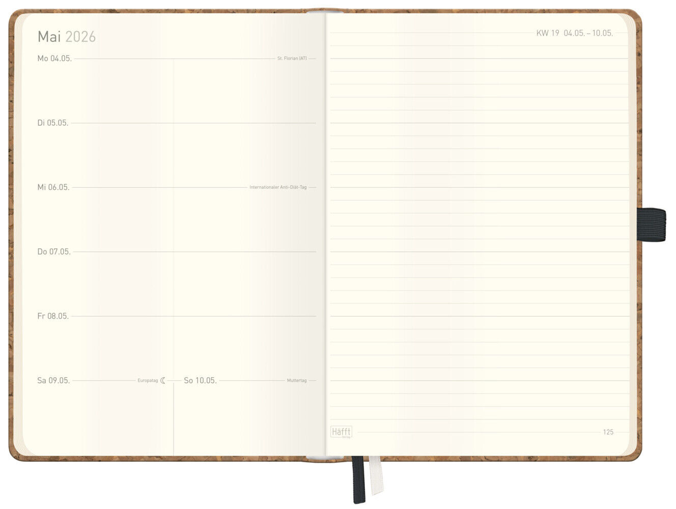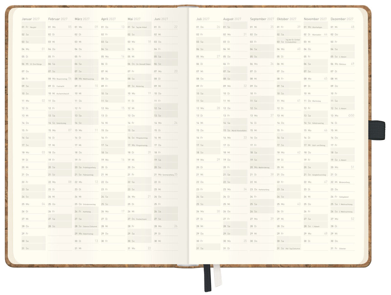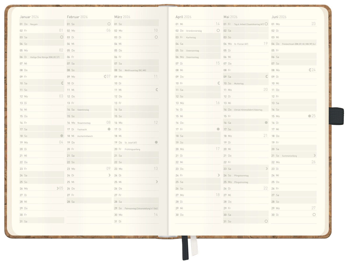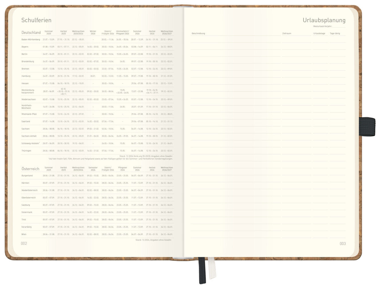18 Monats-Wochen-Notizkalender, Laufzeit Juli 2025 bis Dezember 2026, immer links die Woche und rechts viel Platz für Notizen, funktionale Sonderseiten, Länderkarten, Ferienübersichten, Fadenheftung, Stiftschlaufe, Einstecktasche, Gummiband, Lesezeichen, abger...