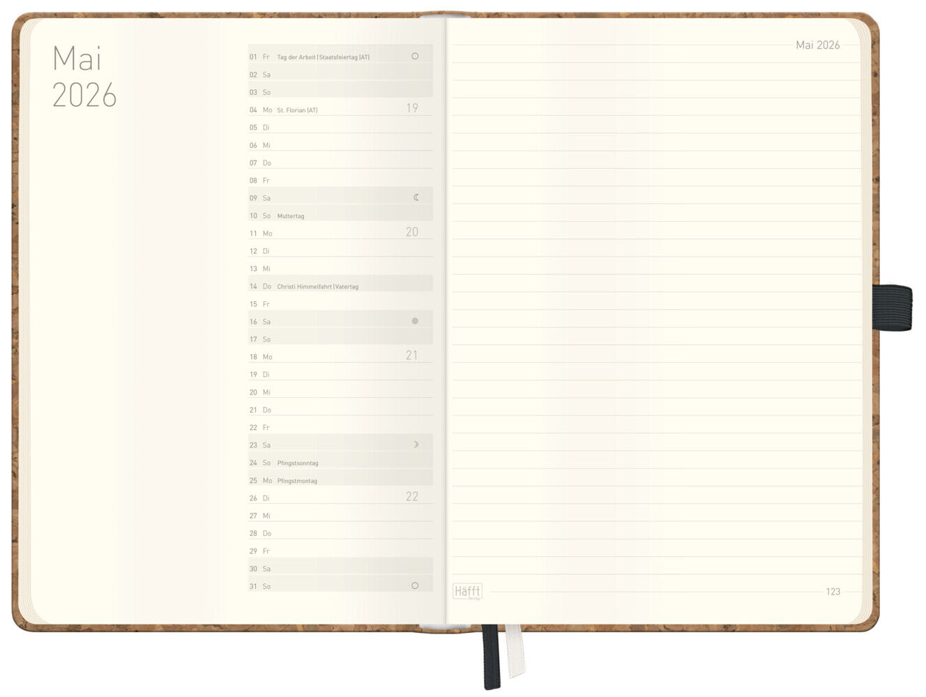 18 Monats-Wochen-Notizkalender, Laufzeit Juli 2025 bis Dezember 2026, immer links die Woche und rechts viel Platz für Notizen, funktionale Sonderseiten, Länderkarten, Ferienübersichten, Fadenheftung, Stiftschlaufe, Einstecktasche, Gummiband, Lesezeichen, abger...