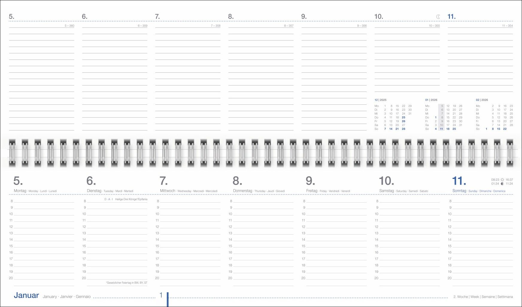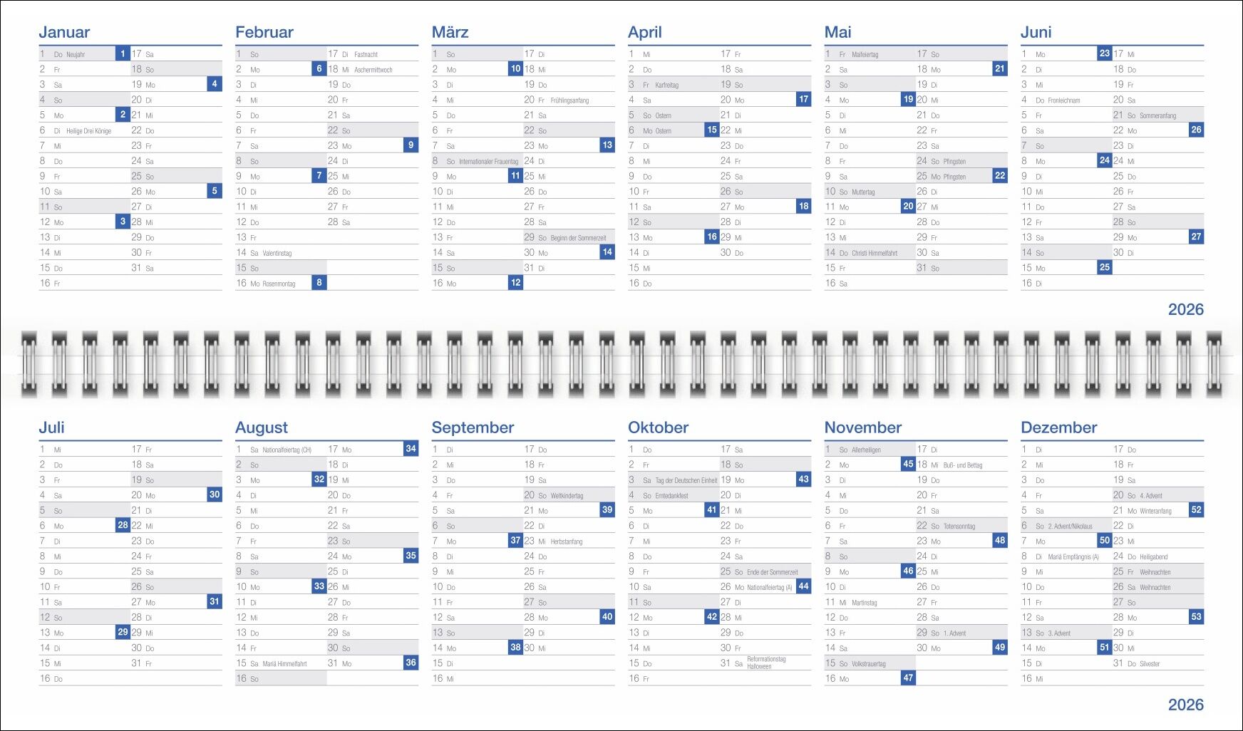 Die Organisationshilfe, die mit der Zeit geht: Der Tischkalender für Büro und zuhause mit viersprachigem Kalendarium und viel Platz für Notizen - Volle Konzentration auf das Wesentliche: Kalender zum Umklappen im Querformat 32,5 x 9,3 cm mit 2 Seiten pro Woc...