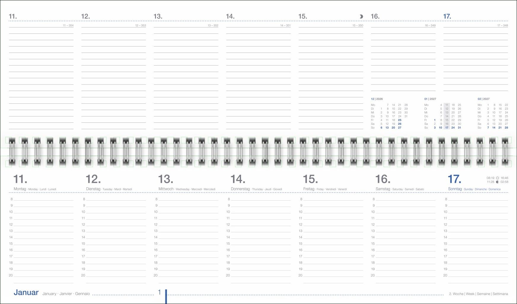 Die Organisationshilfe, die mit der Zeit geht: Der Tischkalender für Büro und zuhause mit viersprachigem Kalendarium und viel Platz für Notizen - Volle Konzentration auf das Wesentliche: Kalender zum Umklappen im Querformat 32,5 x 9,3 cm mit 2 Seiten pro Woc...
